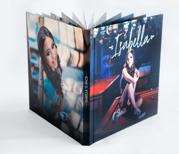 Capa 100% fotográfica, laminada em poliester brilho ou fosco.
