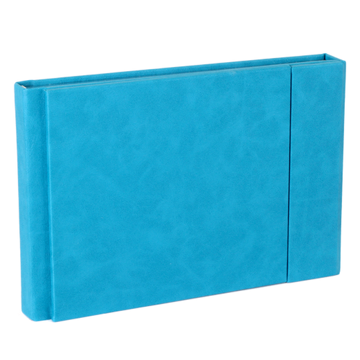 Capa com imã, restimento em couro sintético com várias opções de gravações.