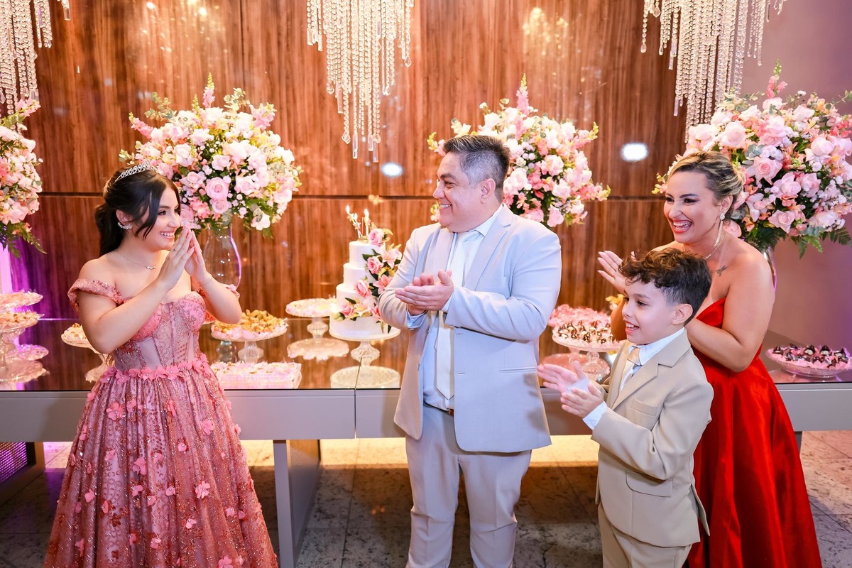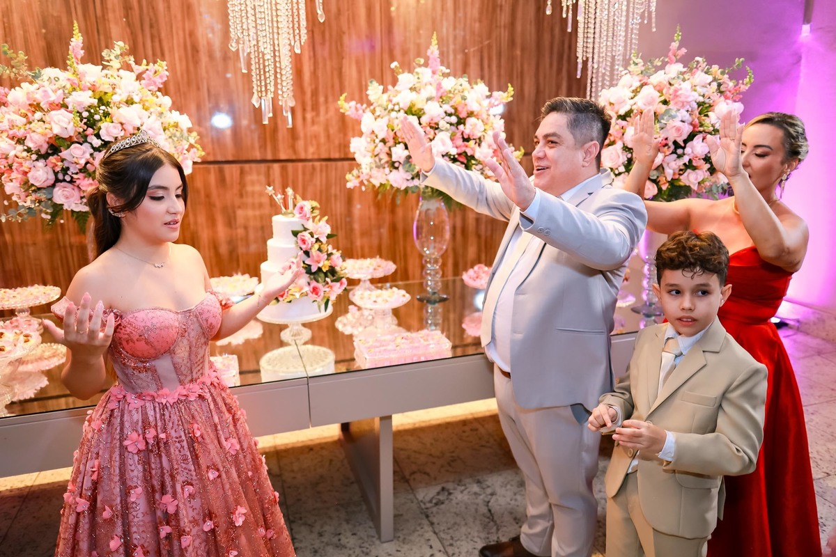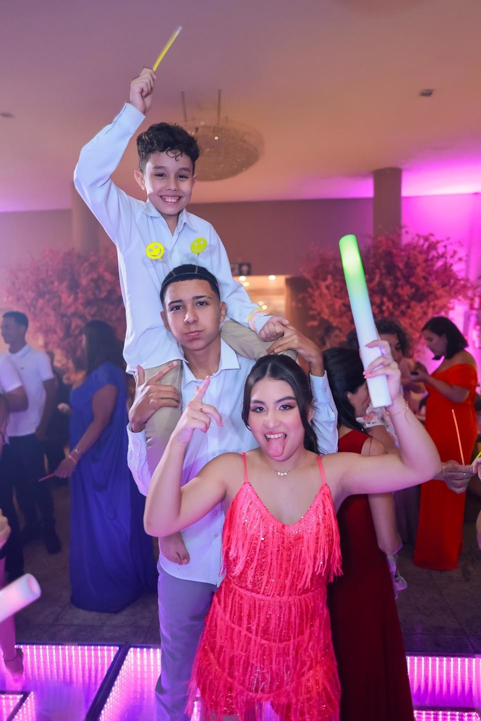 Mas o que realmente dá vida às fotos são os momentos espontâneos: os abraços calorosos, os sorrisos cheios de emoção e toda a energia contagiante da noite. São esses instantes que fazem de cada festa de 15 anos uma história única e inesquecível.