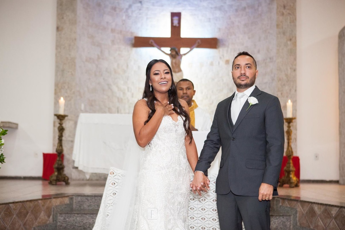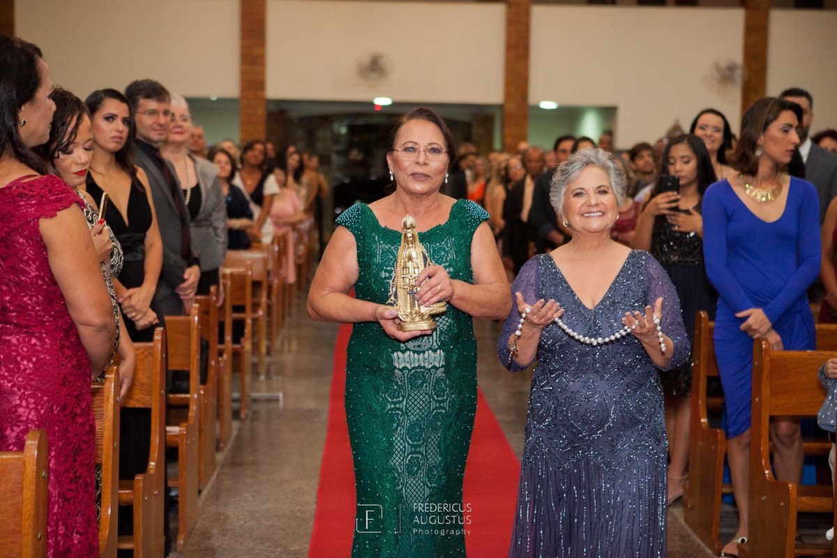 O padre Moises da Igreja Nossa Senhora Aparecida, bairro Riacho das Pedras, celebrou a bonita cerimonia. O coral Allegro Assai abrilhantou a cerimonia, com lindas músicas. Os noivos, Júnia e Felipe Salgado, escolheram com muito carinho a trilha sonora da cerimonia. A decoradora Walquiria Fernandes foi elogiada por ter feito a decoração para cerimonia e da recepção no Multispace.