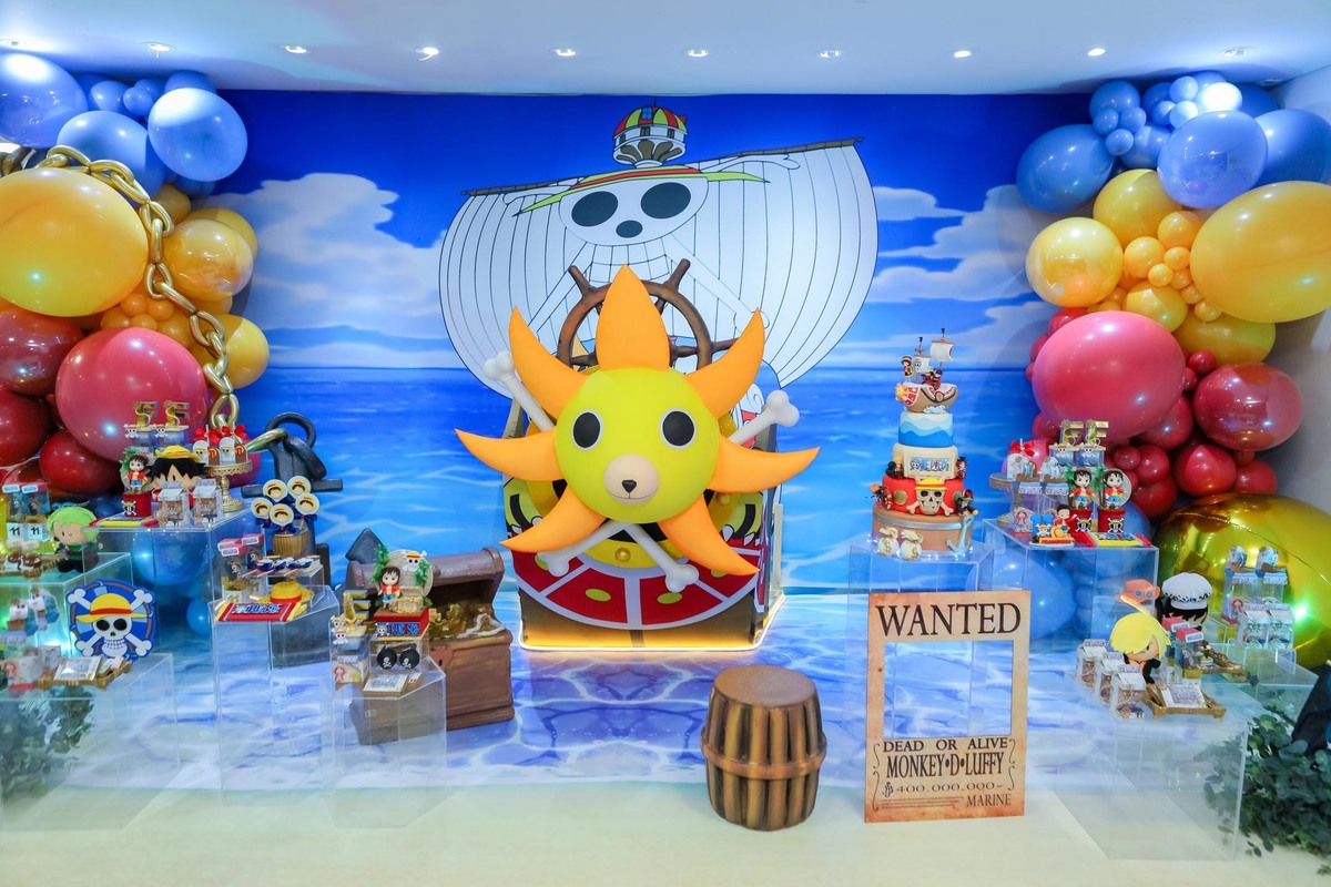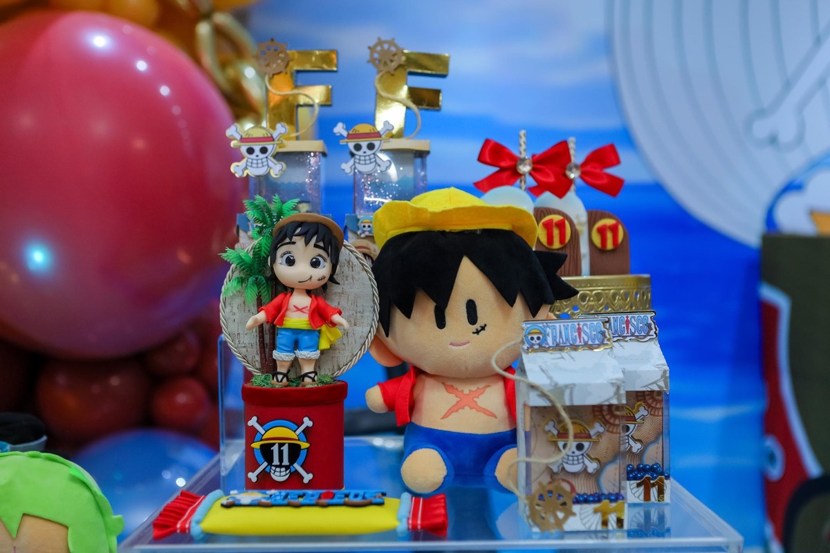 A mesa do bolo estava simplesmente espetacular, com os personalizados que transportaram todos os presentes para o mundo fascinante de One Piece. Cada detalhe foi cuidadosamente planejado e executado pela talentosa equipe da Pumpkins, criando um cenário maravilhoso e único que deixou a todos maravilhados.