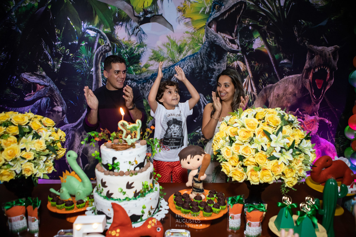 Recordação de uma festa incrível! Tive a honra de registrar a festa de 5 anos do Felipe no encantador Espaço Algazarra Kids, em 2019. O tema? Dinossauros! Cada detalhe da decoração personalizada tornou o evento inesquecível.