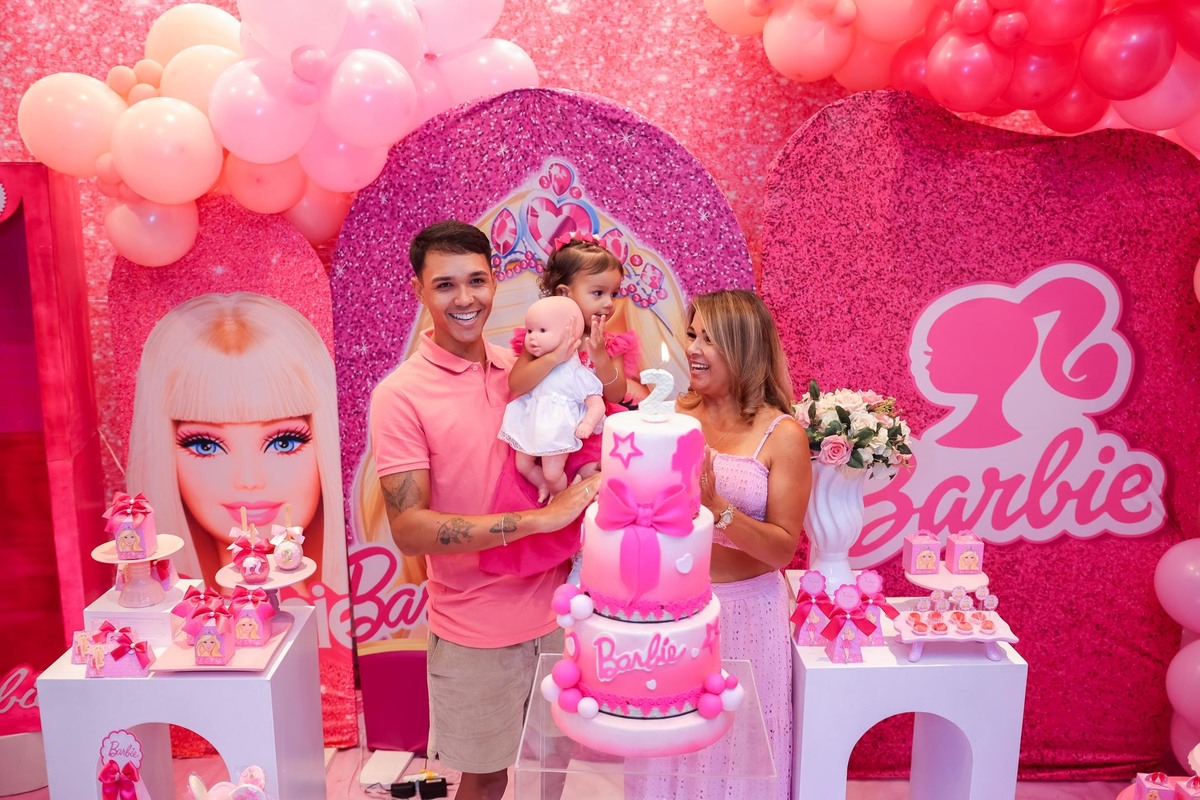 A mesa do bolo estava linda, com personalizados e doces temáticos que encantaram a todos os presentes. Cada detalhe da decoração refletiu a magia e o glamour do mundo da Barbie.