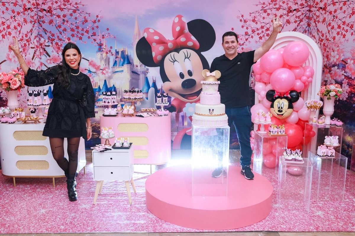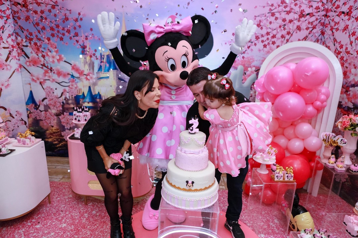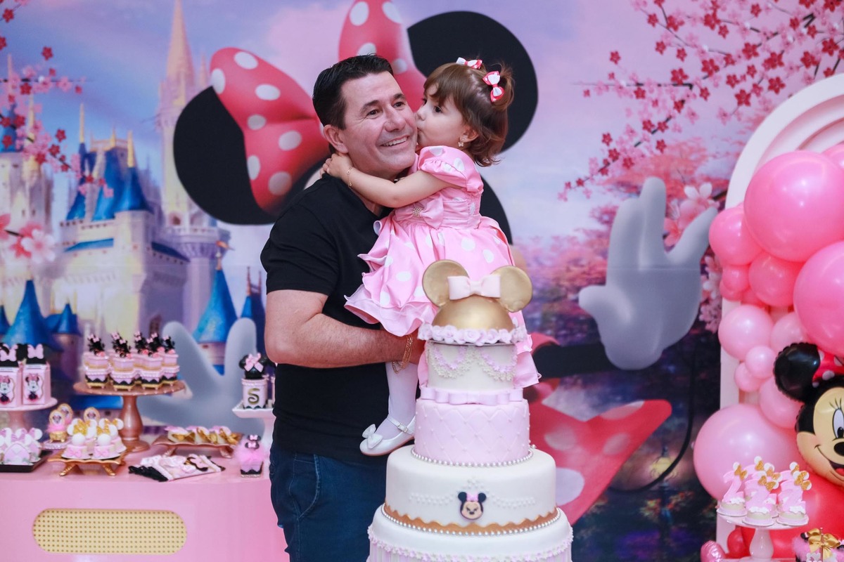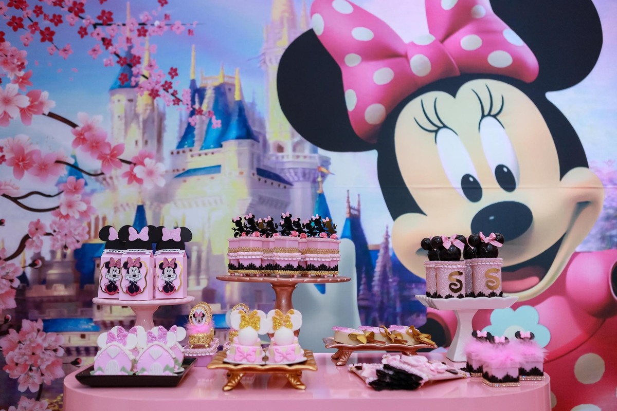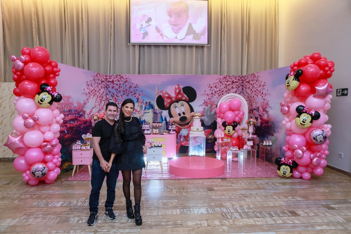 A mesa do bolo, repleta de itens personalizados, foi simplesmente encantadora, e o ponto alto foi a chegada da personagem viva Minnie, que emocionou todos os presentes, especialmente a pequena Sophia!