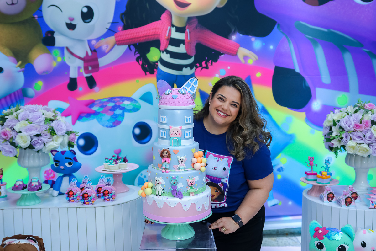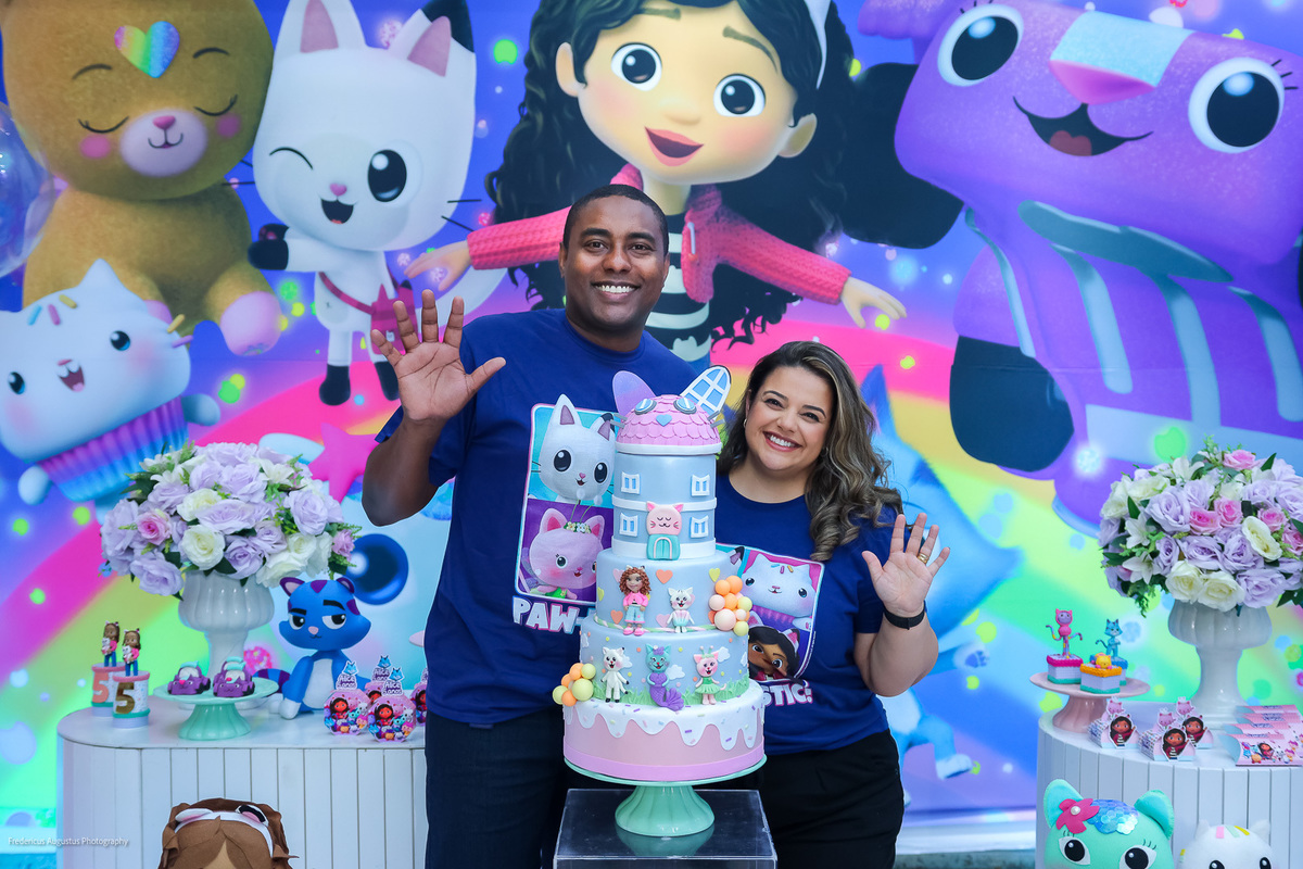 Fotografei a festa de 5 anos da Alice, com o tema encantador da Casa Mágica da Gabby.