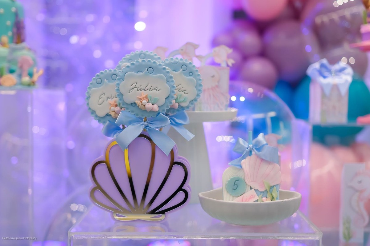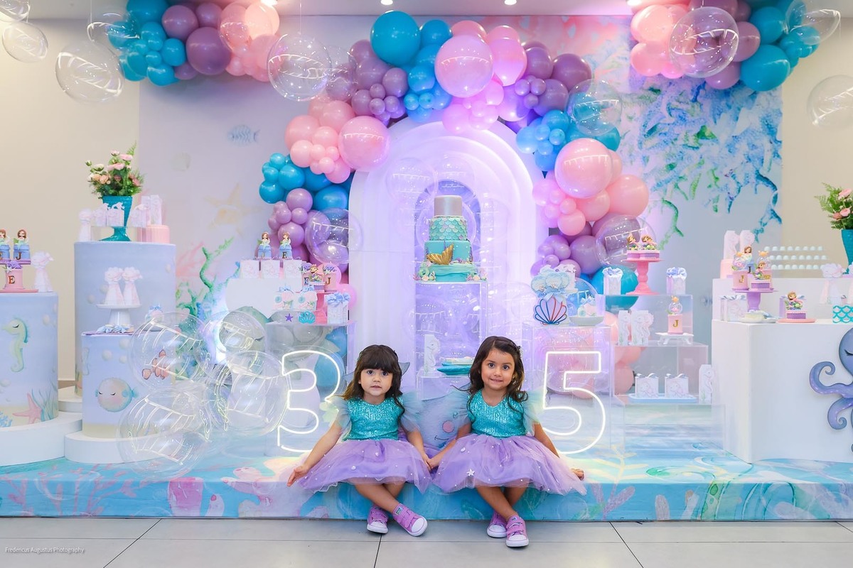 A magia do oceano invadiu o Espaço Iluminar Festas, em BH, para comemorar o aniversário das irmãs Júlia e Érica em grande estilo! Com o tema Fundo do Mar, a decoração estava encantadora e cheia de detalhes incríveis que tornaram o ambiente ainda mais especial. A mesa do bolo e os personalizados ganharam atenção especial e foram clicados com todo o carinho para eternizar cada pedacinho dessa produção maravilhosa.