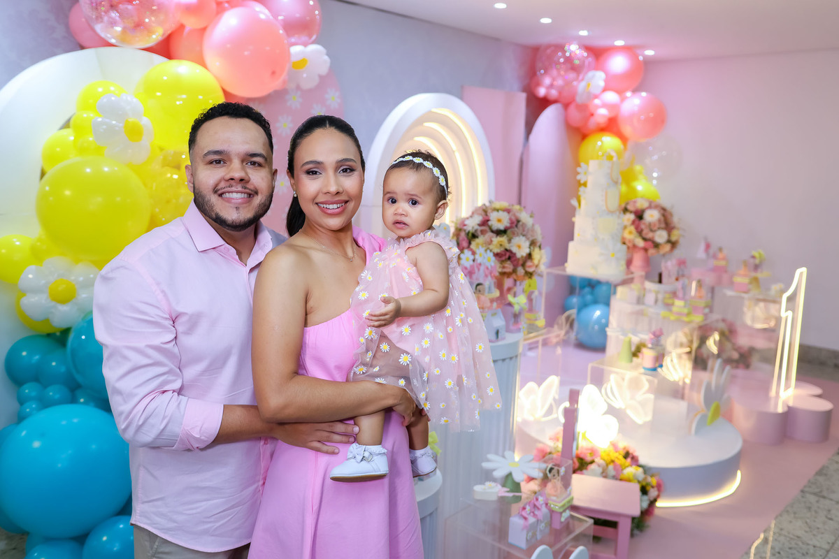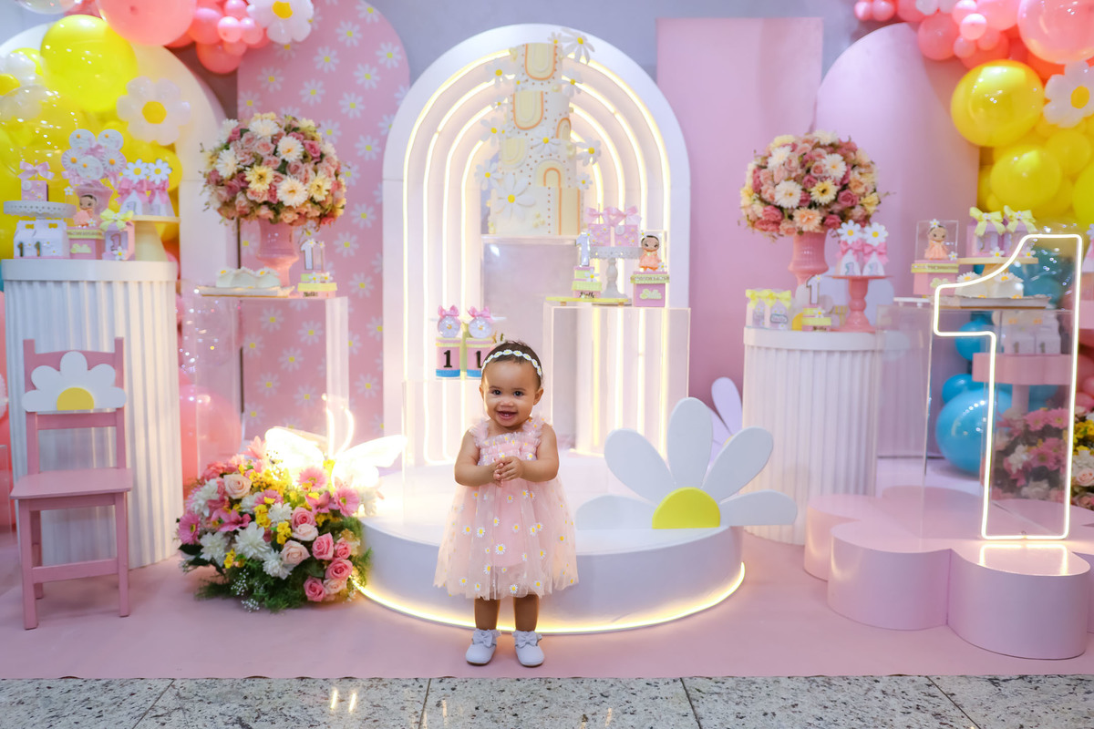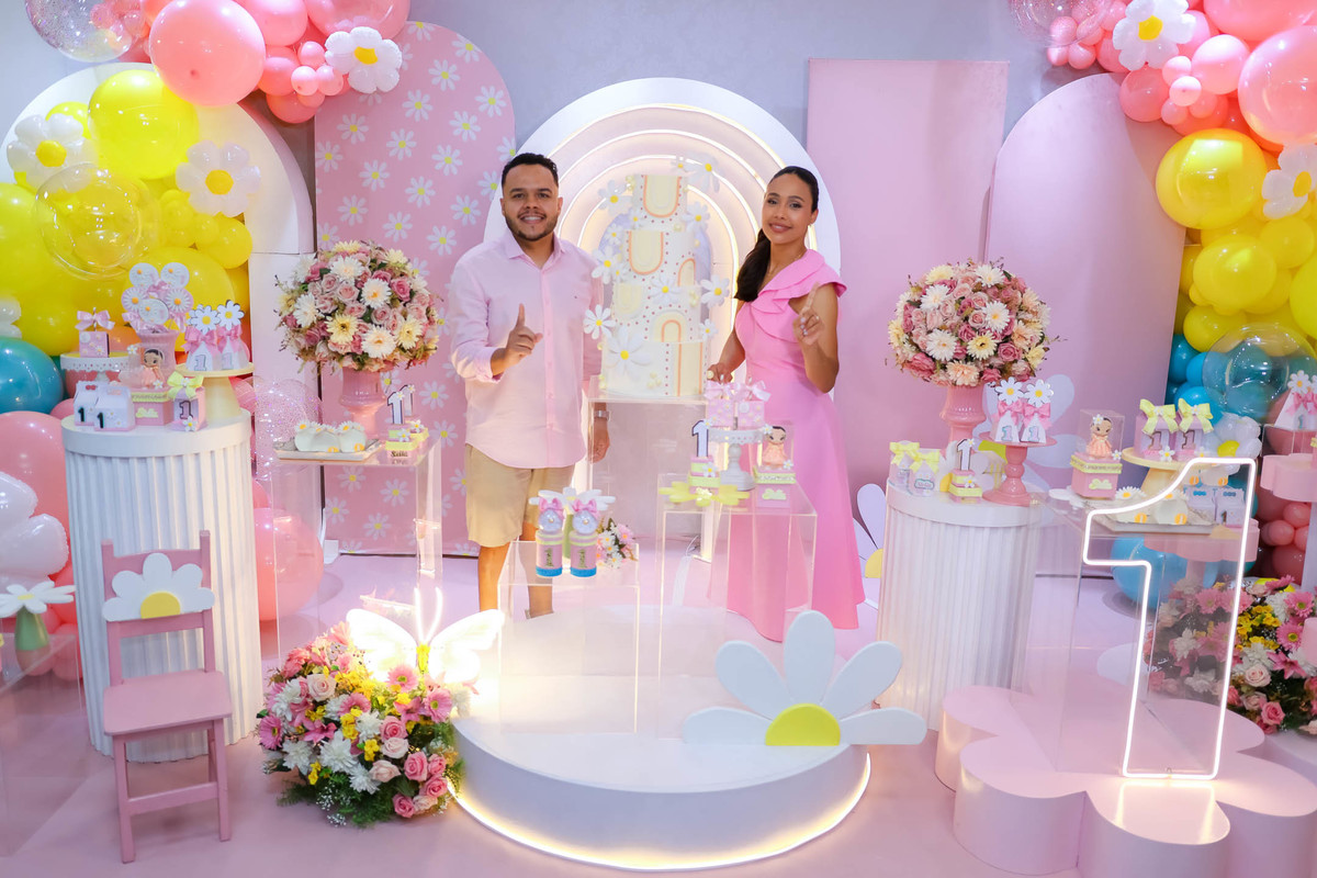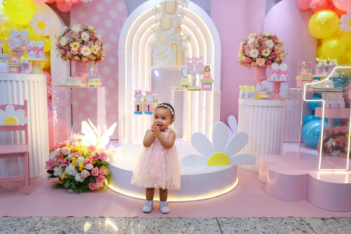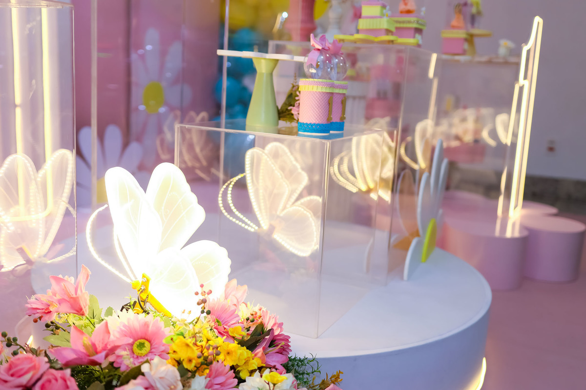 O primeiro aninho da Stella foi comemorado com uma festa linda, leve e encantadora no Buffet Caramelo, em Contagem, com o tema delicado e cheio de charme do Jardim das Borboletas.