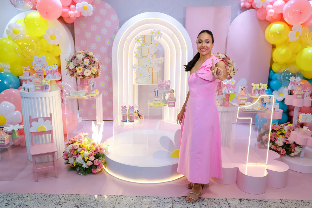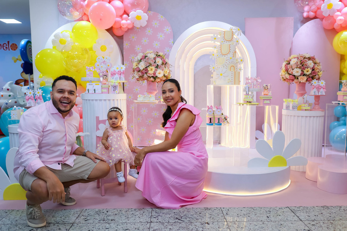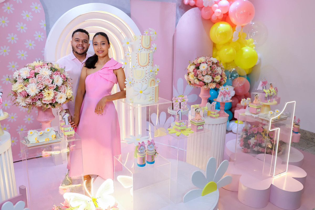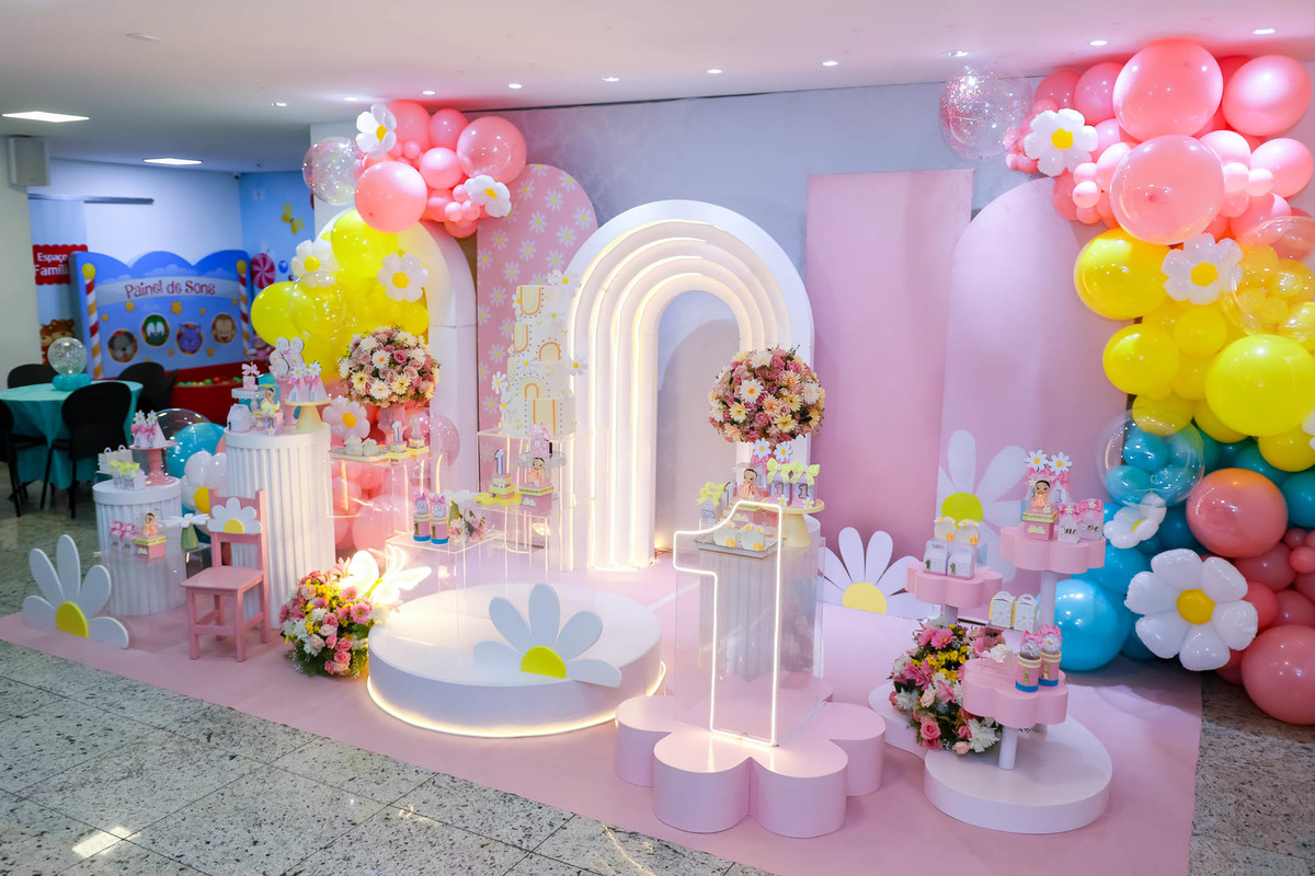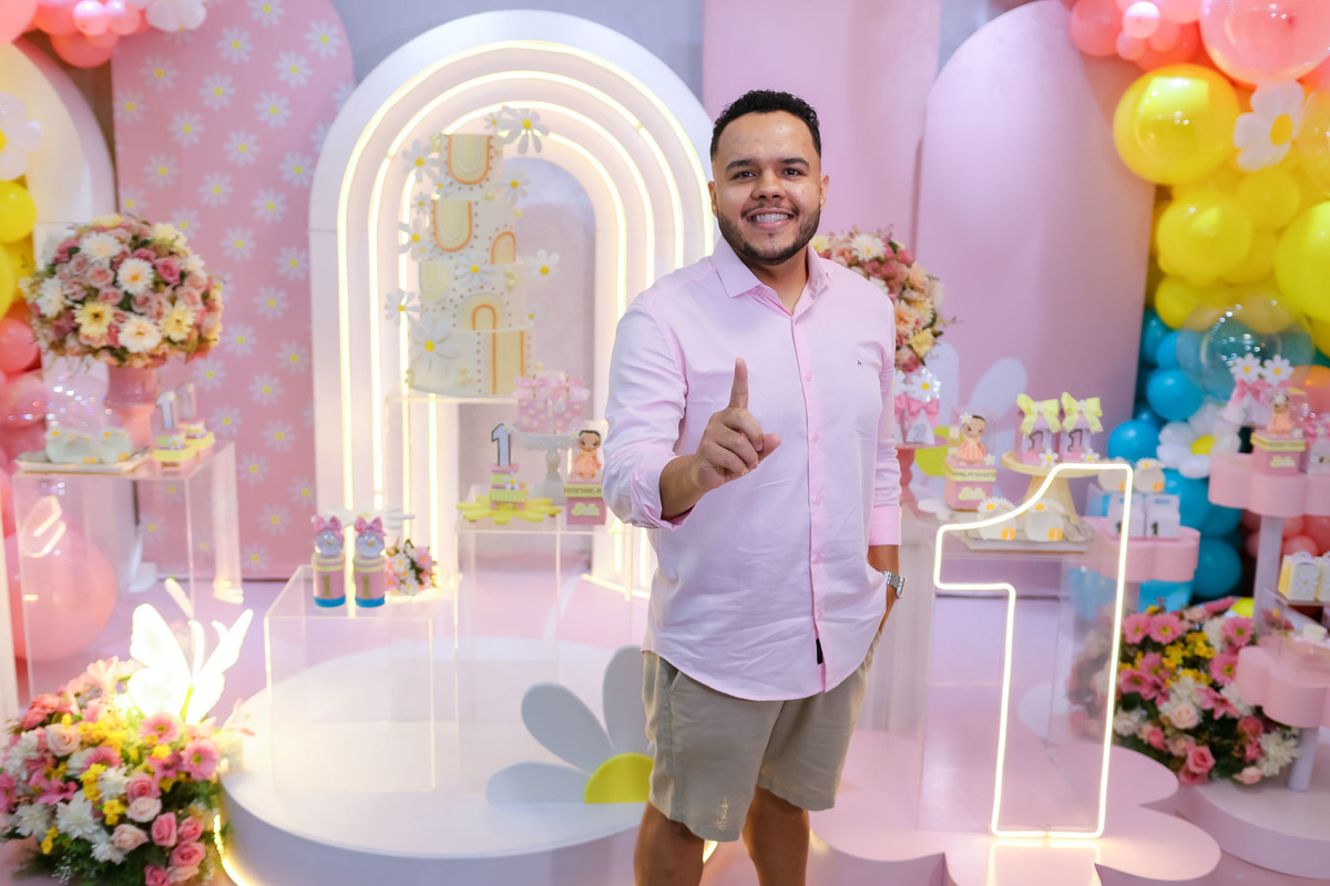 O primeiro aninho da Stella foi comemorado com uma festa linda, leve e encantadora no Buffet Caramelo, em Contagem, com o tema delicado e cheio de charme do Jardim das Borboletas.