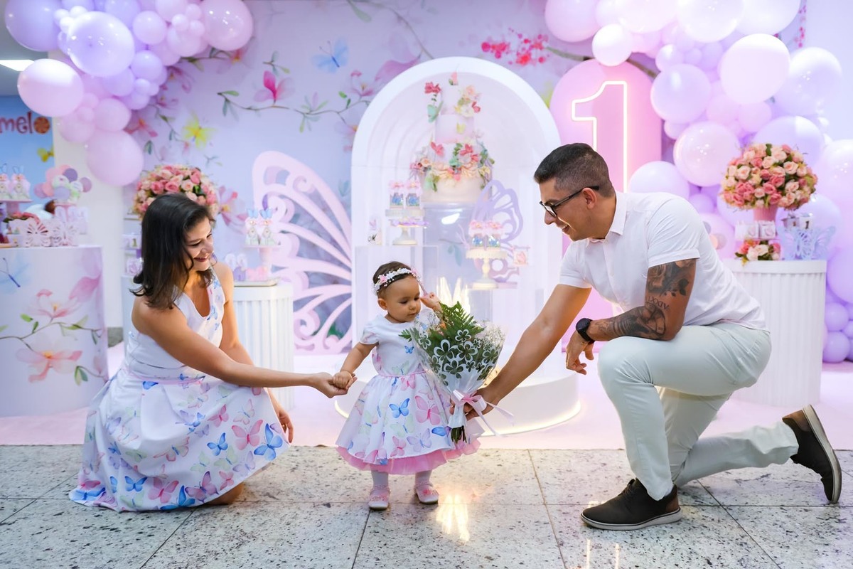 A Maria Vitória comemorou seu primeiro aninho em uma festa encantadora com o tema Jardim das Borboletas, no Buffet Caramelo, em Contagem. A decoração estava delicada e cheia de cores suaves, trazendo toda a magia desse universo que simboliza leveza e transformação.