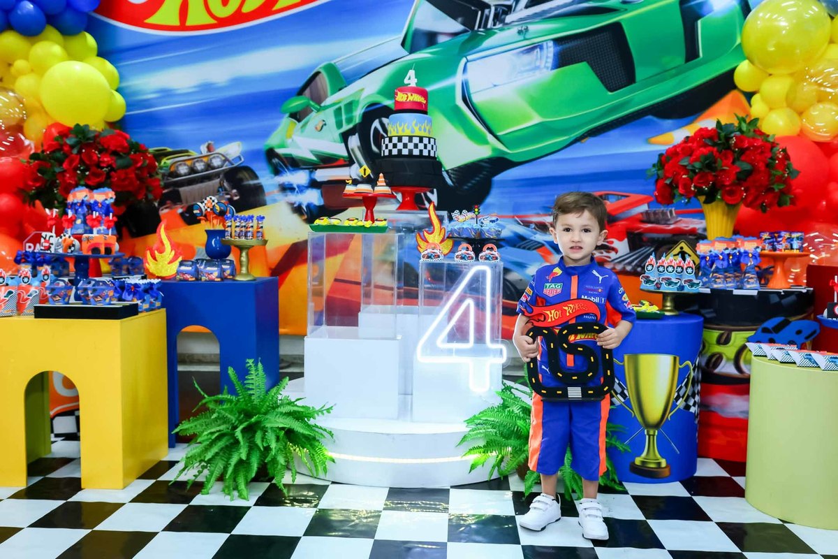 O Lucca comemorou seus 4 anos em uma festa cheia de velocidade, cores vibrantes e muita diversão com o tema Hot Wheels, no Algazarra Kids!