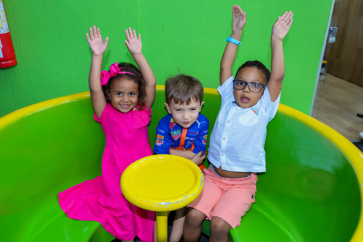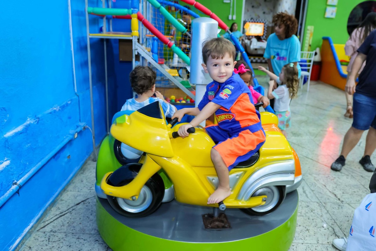 Mas o que realmente faz as fotos ganharem vida são os momentos espontâneos: os sorrisos das crianças, as brincadeiras nos brinquedos e a alegria contagiante que tomou conta da festa.