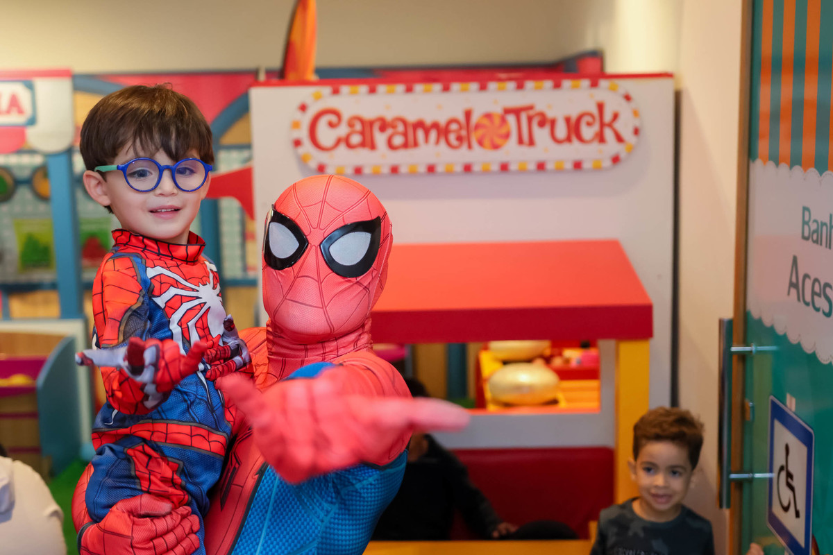 Um dos momentos mais marcantes foi a apresentação do personagem vivo Homem-Aranha, que encantou e animou a criançada. E, para completar a diversão, o mascote do Buffet Caramelo também marcou presença, garantindo ainda mais alegria para todos os convidados.