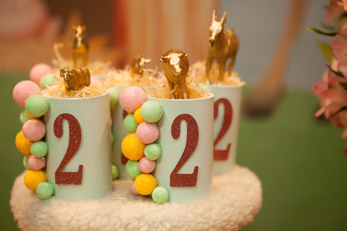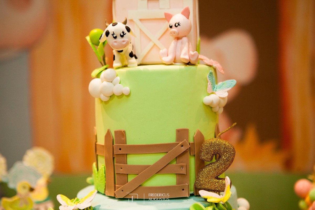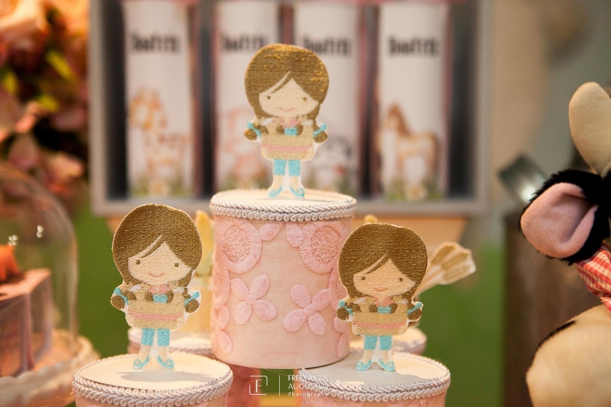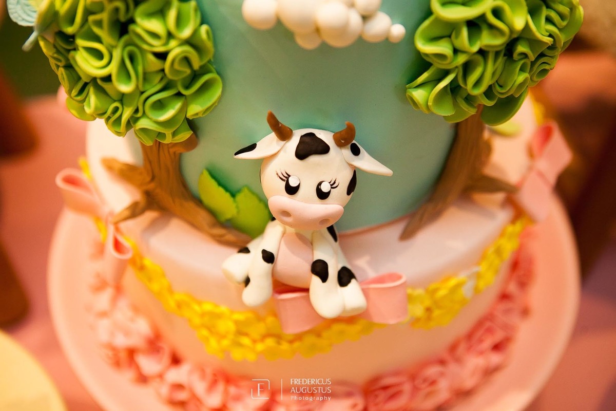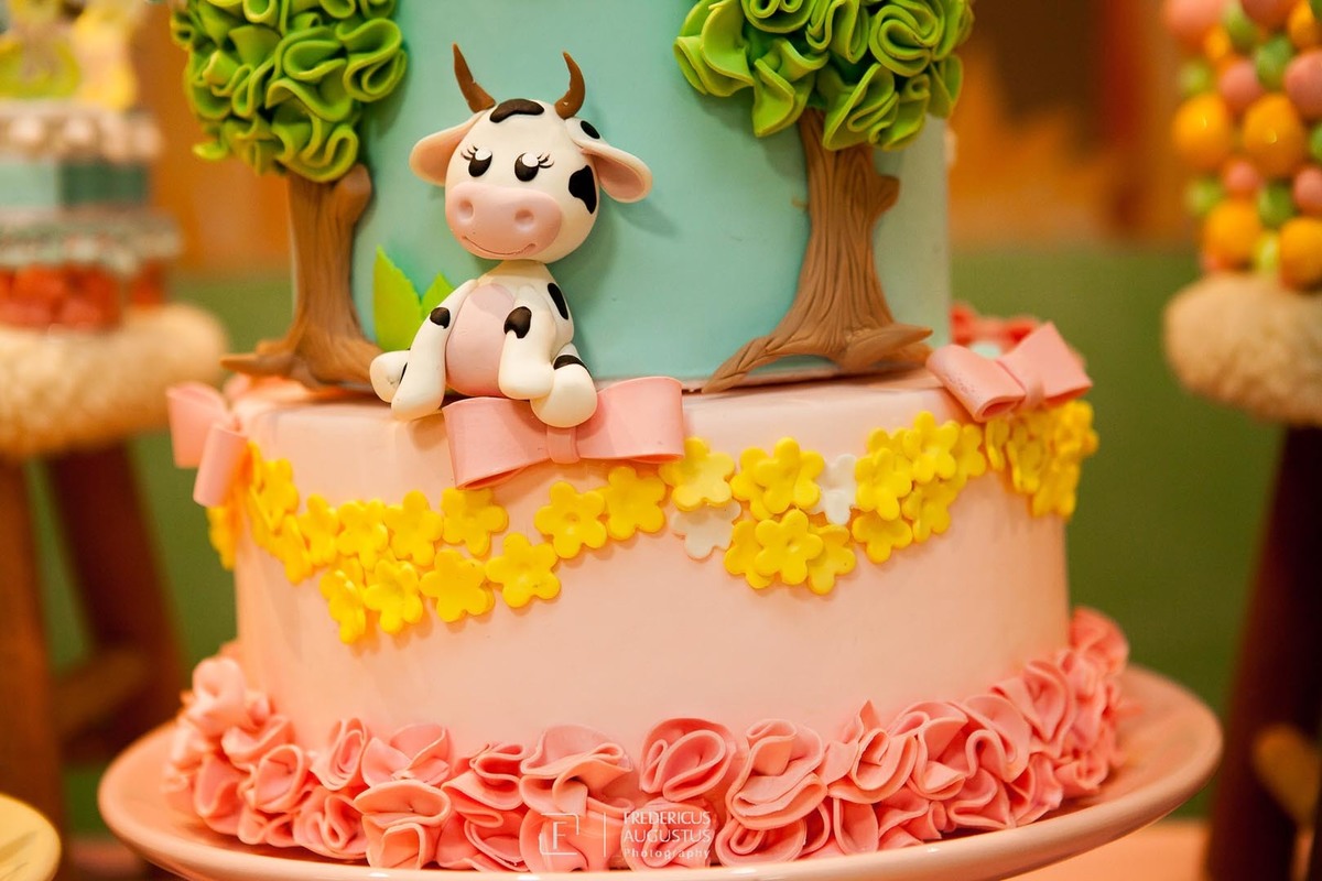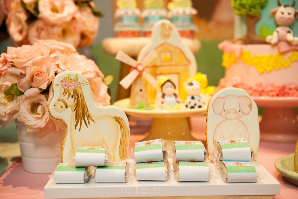 A linda decoração com cenário em 3D, tendo a mesa de bolo com os detalhes personalizados do tema de Fazendinha, encantou a aniversariante, Beatriz e seus pais Luciana e Felipe.