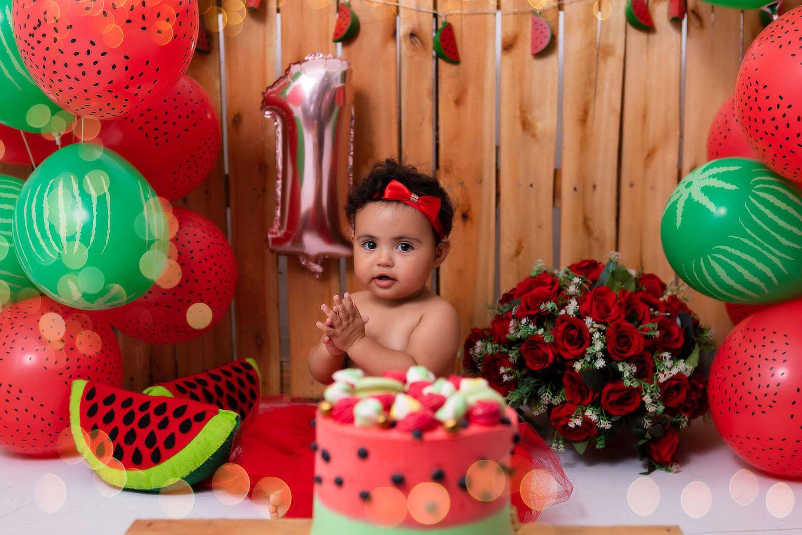 O Smash The Cake é um tipo de ensaio fotográfico que foi criado para registrar com foto e vídeo pela primeira vez o contato da criança com novos cheiros, cores, sabores e texturas de um bolo colorido ou doces.