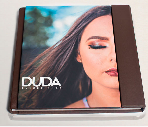 - Capa com foto aplicada em moldura com laminação especial em acrílico.